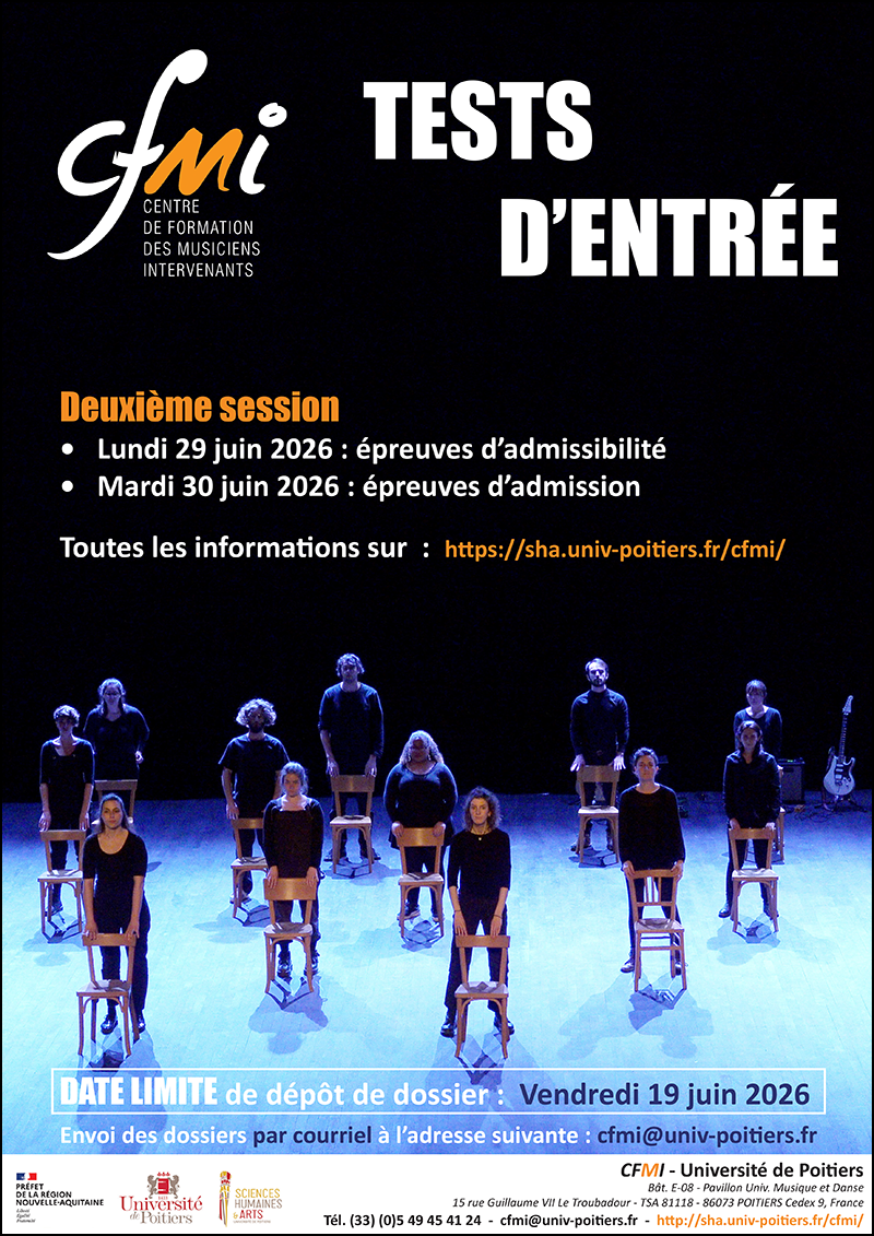Depuis 1984, le Centre de Formation de Musiciens Intervenants (CFMI) Nouvelle Aquitaine de l’Université Poitiers forme des artistes/pédagogues destinés à l’enseignement de la musique à l’école primaire, dans les lieux d’enseignement de la musique (Conservatoire, école de musique), et dans les secteurs socio-éducatif et spécialisés (crèches, EHPAD, IME, milieu carcéral).