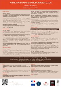 La participation à cet atelier est obligatoire pour les étudiants en Master 2 spécialité Civilisation médiévale, et proposé en tant que Sensibilisation à la recherche (UE 9) pour les étudiants en Master 1 Civilisation médiévale.