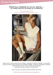 • Colloque international organisé par le Musée Sainte-Croix, l’Université de Poitiers (Criham) et l’association Archives of Women Artists, Research and Exhibitions (AWARE), avec le soutien de la Société des Amis des Musées de Poitiers, en prolongement de l’exposition Belles de jour, femmes artistes, femmes modèles (Musée Sainte-Croix, 18 juin – 9 octobre 2016).