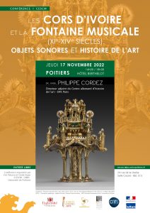 Il s’agira d’abord d’« oliphants » ou cors d’ivoire, richement sculptés de végétaux et d’animaux en Italie du Sud aux XIe-XIIe siècles et tôt diffusés largement en Europe. On considérera notamment un exemplaire au Walters Art Museum de Baltimore. Puis il sera question d’une fontaine d’orfèvrerie à mouvement hydraulique et musical, unique en son genre, créée sans doute à Paris vers 1320 comme une représentation du royaume de France. On informera de recherches actuelles menées avec le Cleveland Museum of Art qui la conserve.