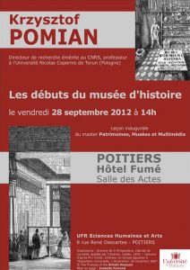 Conférence par Krzysztof Pomian, Directeur de recherche émérite au CNRS, professeur à l'Université Nicolas Copernic de Torun. Conférence inaugurale du master Patrimoines, musées et multimédia.
