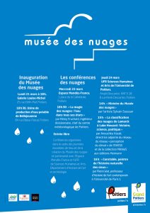 Dans le cadre de la Journée Mondiale de l’eau et des dix ans de la Galerie Louise-Michel, Grand Poitiers a proposé à ses habitants de participer aux côtés de l’artiste, à la création de la collection du Musée des Nuages. Les habitants de Poitiers et Grand Poitiers ont ainsi été invités à imaginer un objet quotidien ayant un lien avec l’eau, l’air ou la lumière, qu’ils souhaitent faire entrer au « Musée des Nuages ».