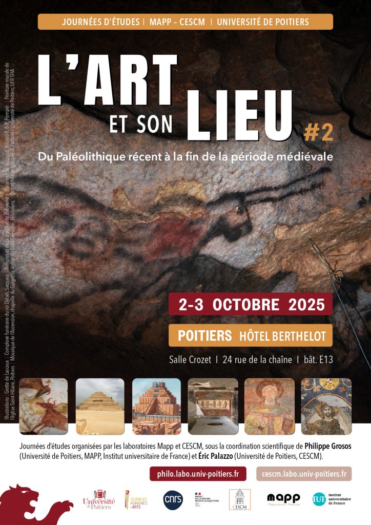 Deuxièmes journées d’études sur le thème "L'art et son lieu", organisées par les laboratoires Mapp et CESCM, sous la coordination scientifique de Philippe Grosos (Université de Poitiers, MAPP, Institut universitaire de France) et Éric Palazzo (Université de Poitiers, CESCM).