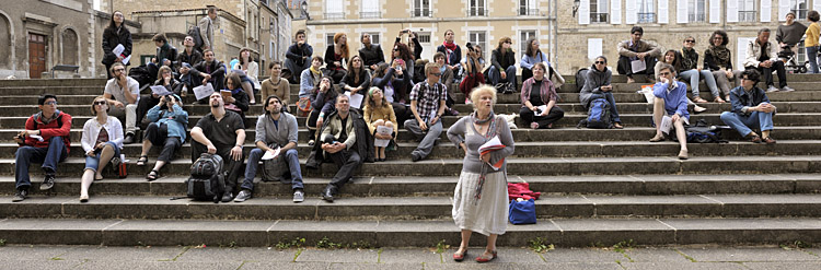 Claude Andrault-Schmitt et les stagiaires des Semaines d’Études Médiévales 2013, devant la cathédrale Saint-Pierre de Poitiers. Photographie : Jean-Pierre Brouard / CESCM