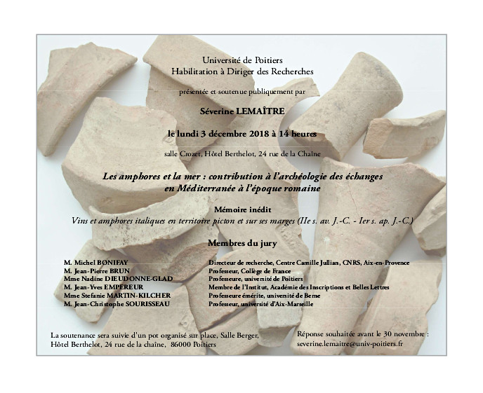 Confirmation souhaitée avant le 30 novembre : severine.lemaitre@univ-poitiers.fr