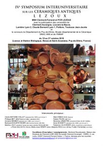 Ce symposium est organisé par la MSH de Clermont-Ferrand et le PCR Lezoux. Le nombre de places est strictement limité. Pour bénéficier de la prise en charge, il convient d’avoir été parrainé par l’un des enseignants des universités associées (Séverine Lemaître pour l’Université de Poitiers) ou le PCR Lezoux et d’adresser sa candidature, par courriel ou courrier.