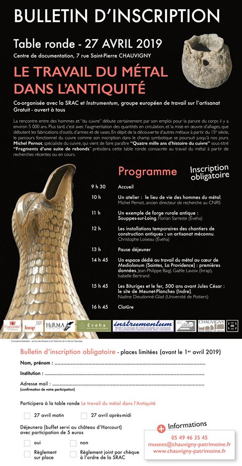 En dépit de la découverte d’autres métaux à partir du 15e siècle, le parcours fonctionnel du cuivre comme son inscription dans le champ symbolique se poursuit jusqu’à nos jours. Michel Pernot, qui vient de faire paraître un ouvrage pluridisciplinaire “Quatre mille ans d’histoire du cuivre” sous titré “Fragments d’une suite de rebonds” viendra animer la table ronde et présentera une conférence le lendemain lors de l’assemblée générale de la SRAC sur le même thème.